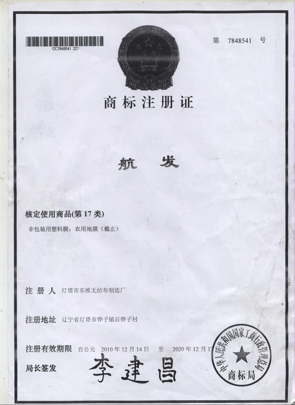 遼寧航發(fā)無紡布有限公司 燈塔市東維無紡布制造廠 聯(lián)系電話: 李總:13841983663 關(guān)總:13555721166 李總:13555721199